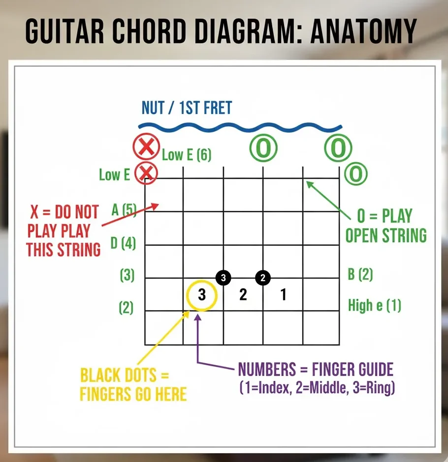 Decoding the Diagram: The Anatomy of a Guitar Chord Chart